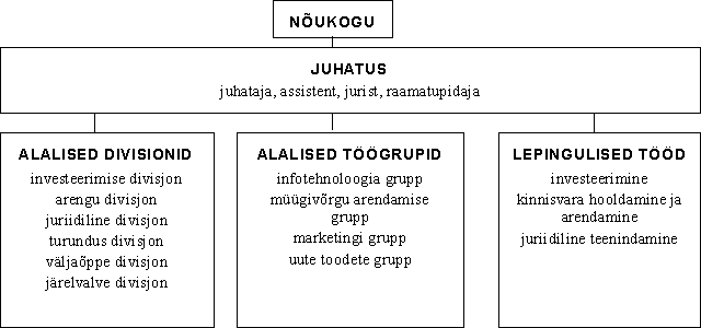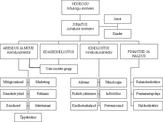 Struktuuriliselt on Emitent jaotatud neljaks peamiseks funktsionaalseks osakonnaks: Arendus ja müük - hõlmab endas kindlustuspoliiside vahetu müügi ning sellega seonduva tegevuse. Funktsionaalsed alajaotused on agentide grupp, marketingi ja reklaami grupp, sekretariaat ning õppekeskus. Lisaks sellele on igat kindlustussuunda ning ka igat kohalikku müügipunkti juhtimas vastav direktor. Edasikindlustuse osakond – tegeleb riskide edasikindlustamise ja sellekohase arendamisega ning korraldab suhteid edasikindlustusfirmadega. Kindlustuse osakond – tegeleb kindlustusriskide hindamise, kindlustusjuhtumite töötlemise ning infotehnoloogia haldamisega. Finantsid ja haldus – organisatsiooniliselt eraldi osakonda ei moodusta, siia gruppi kuuluvad rahandusdirektor (investeeringud ja finantsplaneerimine), pearaamatupidaja ning haldusdirektor (söökla, automajand, valve jms.). 15. oktoobri seisuga ei olnud Emitendil tütarettevõtteid. Emitendi keskmine töötajate arv 1994. aastal oli 91, 1995.