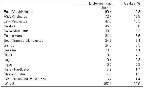 brutopreemiad kindlustusseltside lõikes: