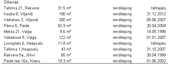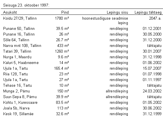 Renditud hooned, ruumid, rajatised ning maa Seisuga 23. oktoober 1997: