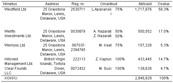 Emitendi aktsionäride nimekiri 15. oktoobri seisuga on järgmine: