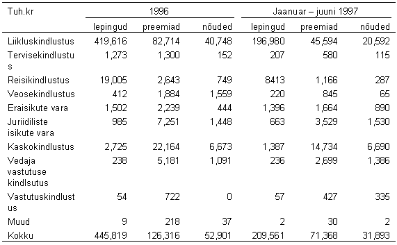 Liiklus- ja transpordikindlustuse osas toimub struktuurimuutus tõenäoliselt vabatahtliku sõidukikindlustustuse kasuks, sest kohustuslik liikluskindlustus on tänaseks saavutanud sisemise stabiilsuse ning võib kasvada ainult koos autode arvu kasvuga. Üldisest majanduskasvust tingituna lisandub ettevõtetele uusi põhivarasid luues täiendava potentsiaalse kindlustusväärtuse. Ka inflatsioon suurendab nominaalselt kindlustusväärtuse kasvu. Eestis on 15 kahjukindlustusseltsi (sh. Eesti Liikluskindlustuse Fond). ASA Kindlustus on kogutud brutopreemiate järgi suuruselt teine kahjukindlustusfirma Eesti Varakindlustuse järel. 1997. aasta l poolel kogutud kahjukindlustuse