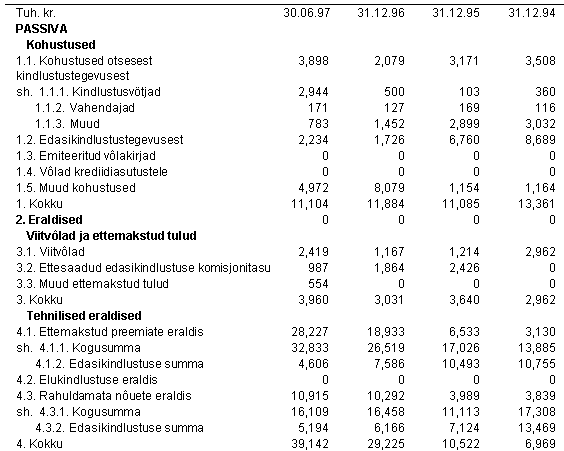 1997. a I poolaasta bilansi passiva