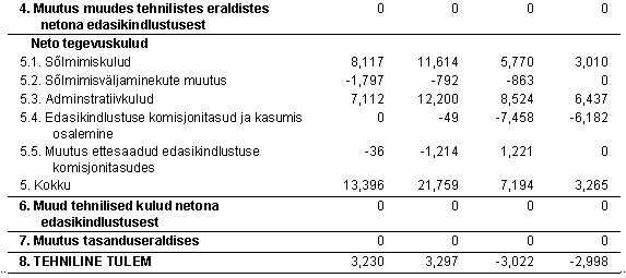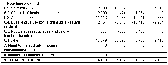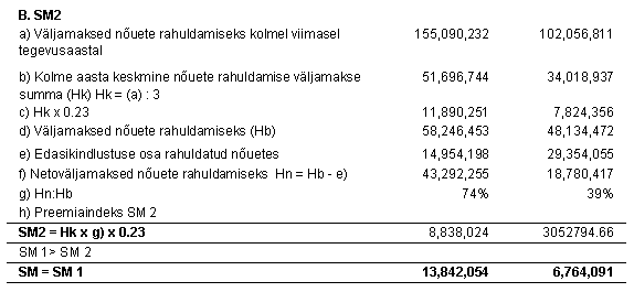 Bruto kulusuhe = tegevuskulud (s.h. kahjukäsitluskulud) / brutopreemiad Solventsusmarginaal = (Varad-kohustused-viitvõlad ja ettemakstud tulud) / kogutud preemiad netona edasikindlustusest. Näitajad aktsia kohta on arvutatud ajaga kaalutud keskmise aktsiate arvu baasil, mis on võrreldavuse huvides ümber arvutatud 10-kroonise nimiväärtusega aktsiateks.
