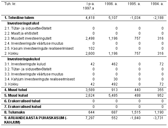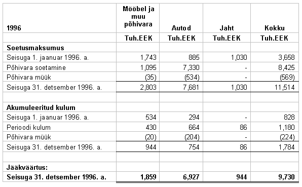 1996. a. lõppenud majandusaasta kohta annab järgnev tabel: