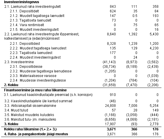 LISA 5: Koondtabel – rahavoogude aruanne 1994, 1995, 1996 Rahavoogude aruanne