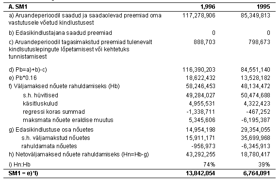 LISA 6: Solventsusmarginaali kalkulatsioon 1995, 1996 Solventsusmarginaali kalkulatsioon