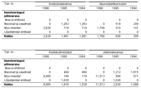 LISA 7: Põhivarade liikumine 1994, 1995, 1996 LISA 8: InvesteeringuD 1994, 1995, 1996