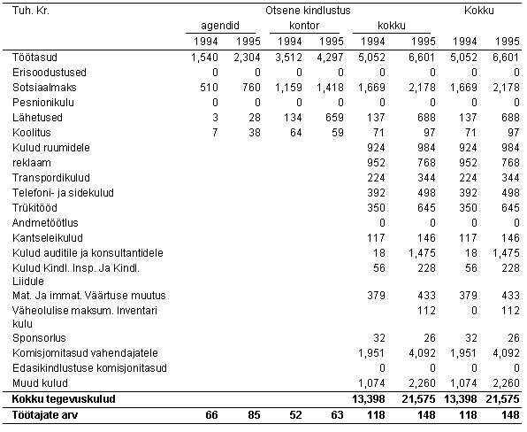 eraldiste aruanne 1994, 1995