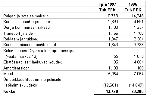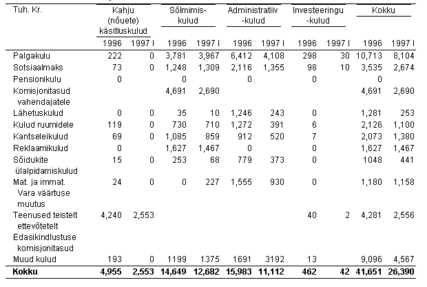 1997. a I poolaasta kulude aruande