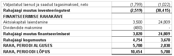 Lisatud märkused on finantsaruannete lahutamatu osa.