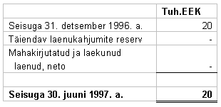 jääk 981,042 krooni, moodustati halbade laenude reserv summas