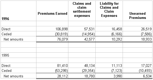 reinsurance activity during the years ended 1996 and 1995 is as follows: